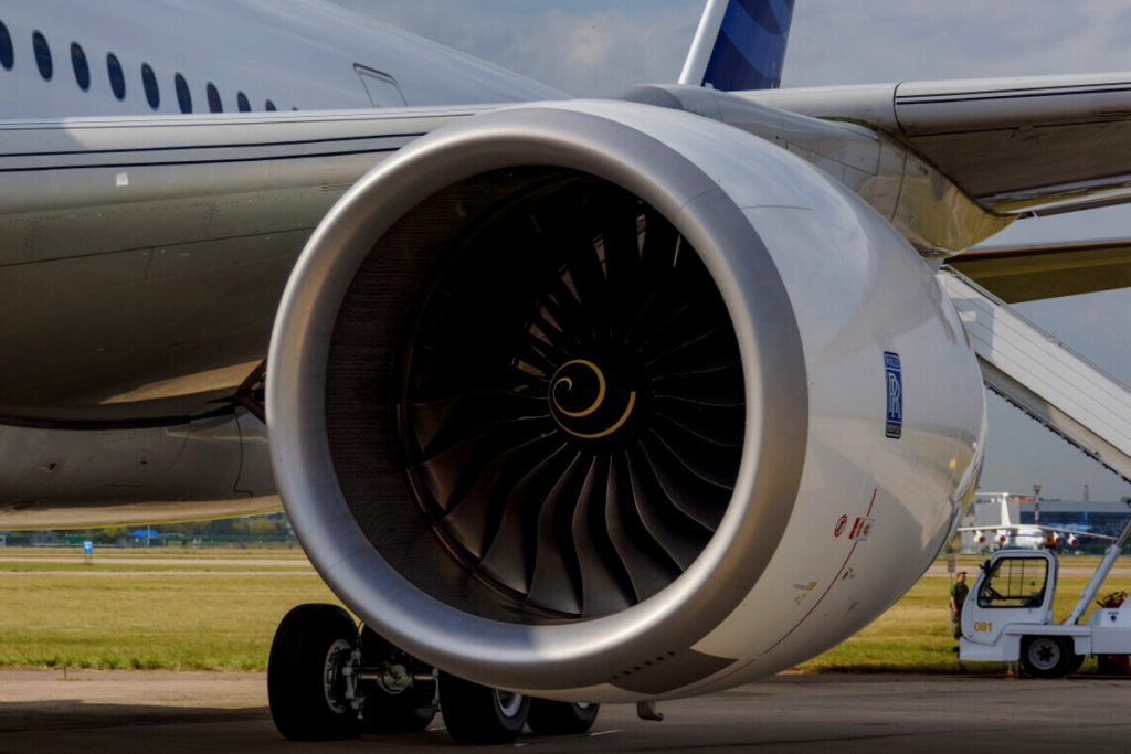 Mesin turbofan high-bypass menggunakan kipas besar untuk menggerakkan lebih banyak udara di sekitar inti mesin, meningkatkan efisiensi dan mengurangi kebisingan.